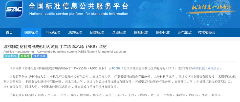 2)GB/T 42620-2023 增材制造 材料挤出成形用丙烯腈-丁二烯-苯乙烯(ABS)丝材;
