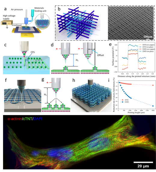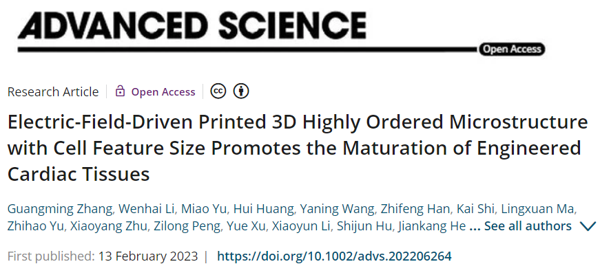 近日,yl88858永利官网山东省增材制造工程技术研究中心联合苏州大学心血管病研究所、西安交通大学、青岛大学附属医院等多家单位,在电场驱动喷射微3D打印组织工程支架方面取得重要进展,相关研究成果以“Electric-Field-Driven Printed 3D Highly Ordered Microstructure with Cell Feature Size Promotes the Maturation of Engineered Cardiac Tissues”为题,发表在国际高水平期刊《Advanced Science》(中科院大类一区, IF 17.521)。我校张广明副教授和李汶海硕士为论文共同第一作者,兰红波教授为通讯作者,青岛理工大学为第一署名通讯单位。该成果具有典型的“医工结合”特色,也是我校首次在该领域发表成果。