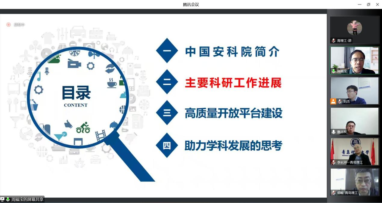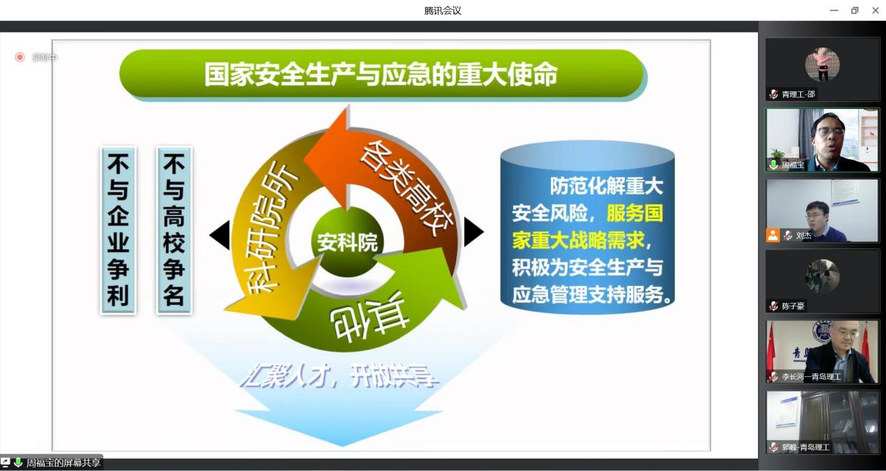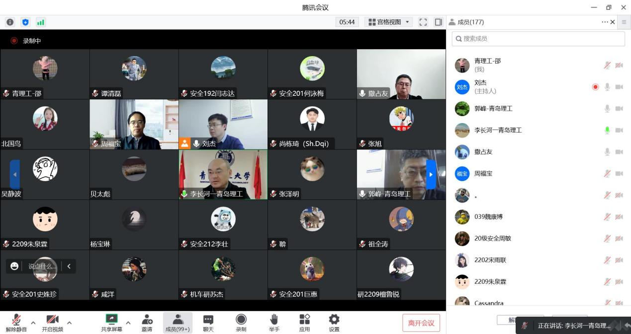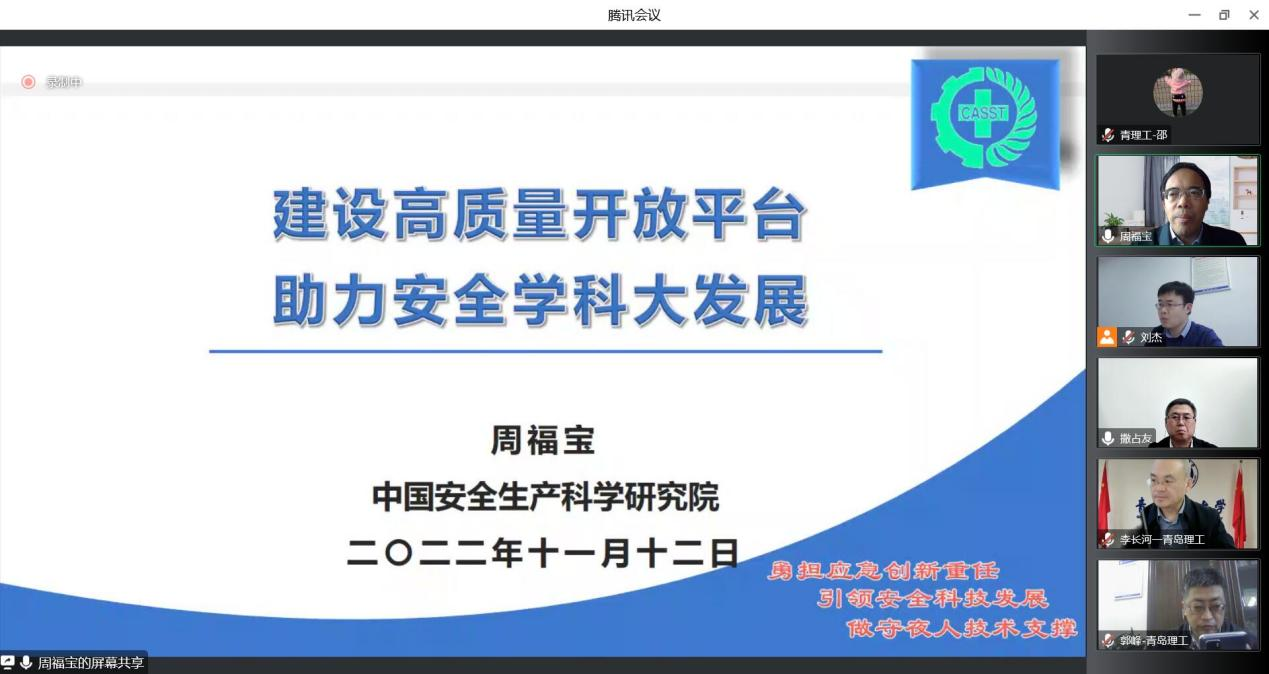 为进一步推动学校安全科学与工程学科高质量发展,11月12日下午,中国安全生产科学研究院院长周福宝教授应邀作了题为《建设高质量开放平台,助力安全学科大发展》的专题报告,党委常委、副校长李长河教授主持会议并讲话,yl88858永利官网院长郭峰教授、副院长刘杰副教授、安全科学与工程学科专业负责人撒占友教授以及任课教师、研究生和本科生200余人线上参加,会议由李长河主持。