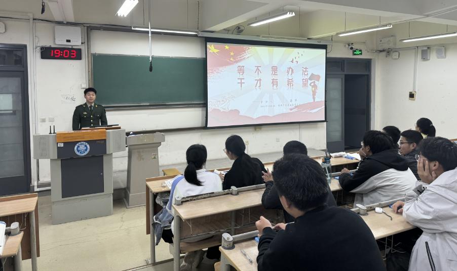 为深入贯彻党的强军思想,积极响应国家征兵号召,进一步激发广大青年学生的爱国情怀与国防意识,10月23日,yl88858永利官网在主教学楼B131举办应征入伍启蒙教育活动。本次活动邀请了学院退役士兵蒋洋和孙可参与。