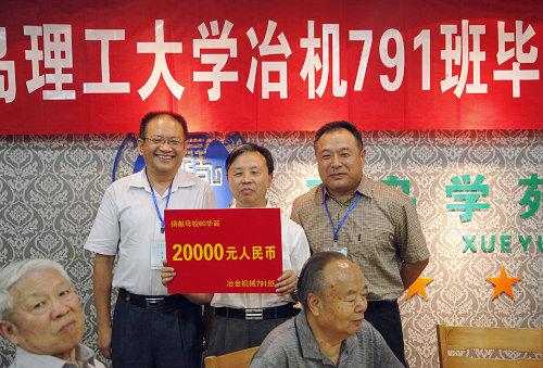 7月5日,我校冶金机械79级1班校友从全国各地回到母校,举行毕业30周年庆典。校党委书记薛允洲,校党委副书记刘龙海,学校原党委书记王兆伦、耿喜华,党办校办、校董校友办主任杨兴昌,校友办工作人员,机械学院新老领导和部分老教师参加庆典。