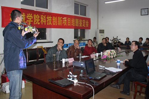 此次答辩会共有“绵核桃剥壳机”、“儿童益智健身车”等21个项目进行结题答辩,项目内容涉及面广,选题新颖,设计合理并且具有很强的创新性和实用性。答辩阶段,同学们借助PPT及作品实验视频就项目的工作原理、创新点及应用推广前景等方面向评委做了详细展示。在评委提问阶段,评审委员会成员观看了部分产品的现场演示,严格的审查了项目的技术资料与性能指标,并对项目中存在的不足之处进行了提示与引导。