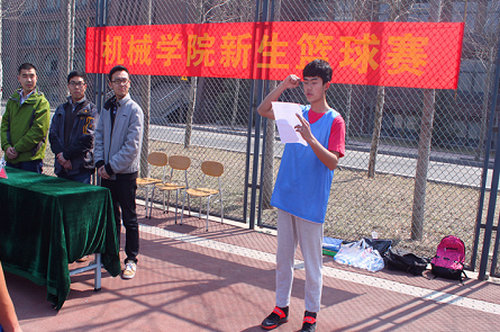 为积极响应团中央、教育部、国家体育总局、全国学联关于在全国高校广泛开展大学生“走下网络,走出宿舍,走向操场”的群众性课外体育锻炼活动的通知,丰富大学生的课余生活,3月18日中午,机械学院春季篮球赛开赛。13级辅导员王成出席开幕式。