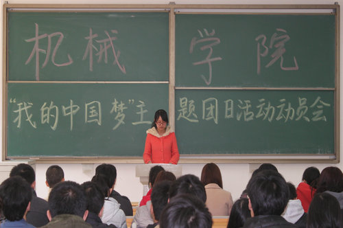 为加强学院文化建设,探索新形势下团务工作的新思路、新方法,调动广大团员青年积极参加团日活动的积极性和创造性,3月22日,机械学院在嘉陵江路校区主教学楼举办了“我的中国梦”主题团日活动动员大会。学院11、12级各班团支部成员参加了大会。