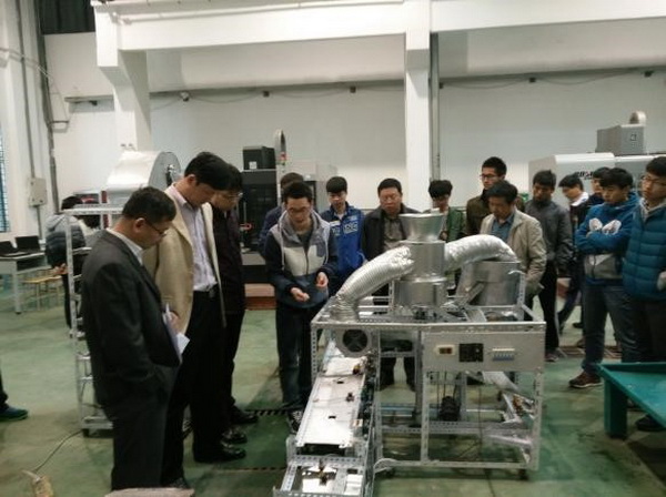 接下来,胶州市各位企业负责人认真听取各项目的具体功能介绍,仔细观看了实物造型以及作品三维动画,并与负责制作科技产品的同学进行了深入的沟通。在三十余项项目介绍完毕,五位企业家对作品的应用前景以及不足之处向同学们提出了宝贵的意见,指出:一是科技创新不能局限于比赛制定的主题,要远眺市场,从市场上的需求来寻找符合参赛主题的作品创意;二是要大力进行国内国外市场都缺乏的科技创新,要对科技的发展有远见性,积极响应习近平主席的国家工业发展战略.