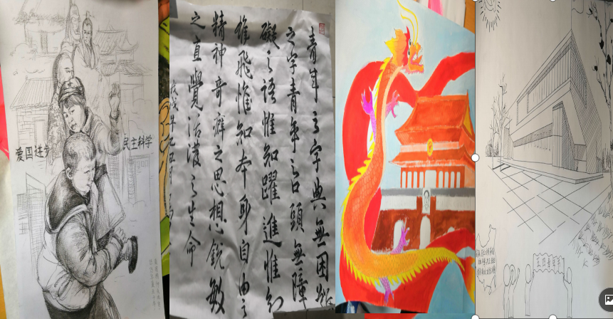 本次大赛分为绘画类、软笔书法和硬笔书法三类,同学们热情高涨,积极发挥自身所长,踊跃报名。作品紧扣“五四精神”主题,内容丰富、形式多样,或浑雄苍劲,或隽永飘逸,或清秀雅致,相得益彰。所有的参赛作品在经过评委的层层评选之后,最终八名获奖者脱颖而出。绘画组:一等奖交通182 杨华慧、二等奖机械182许曦普、三等奖机械183林俊义;书法组软笔:一等奖机械189杨昊,二等奖安全182班杨泽轩;书法组硬笔:一等奖机械182刘明璇、 二等奖交运182高子轩、 三等奖测控181张浩然。最后殷宗华向参赛学生强调了在文化艺术上取长补短、相互借鉴、传承民族精神和优秀文化的重要性。