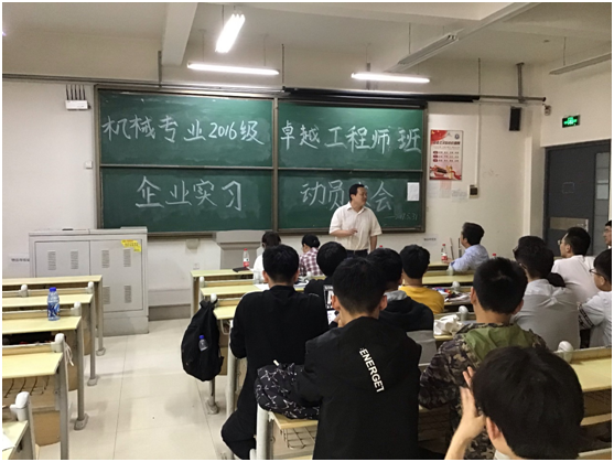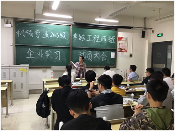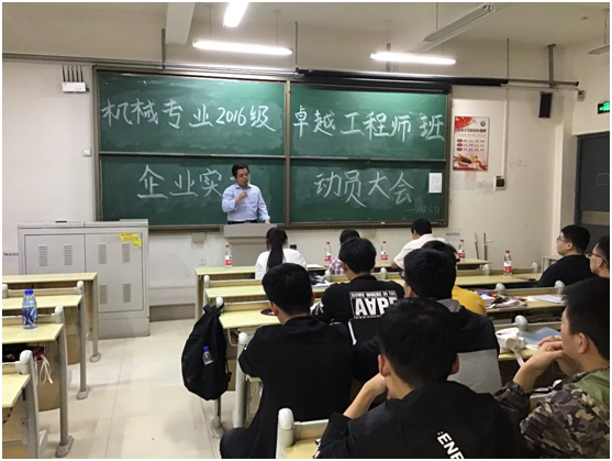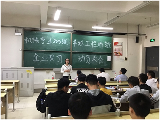 2019年5月31日,yl88858永利官网卓越工程师试点机械1610班举行了“企业实习动员大会”,学院林海涛副书记、杨勇副院长、卓越工程师计划负责人江京亮老师、班主任李淑云老师、辅导员吴静老师参加动员大会。