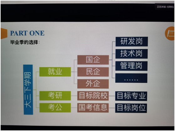 任则归作为格力的员工以自己的经验分析了企业招聘的流程,详细介绍了春招、秋招与招聘流程,用幽默质朴的语言耐心的解答了同学们的疑惑,为学生将来职业道路规划提供了帮助。