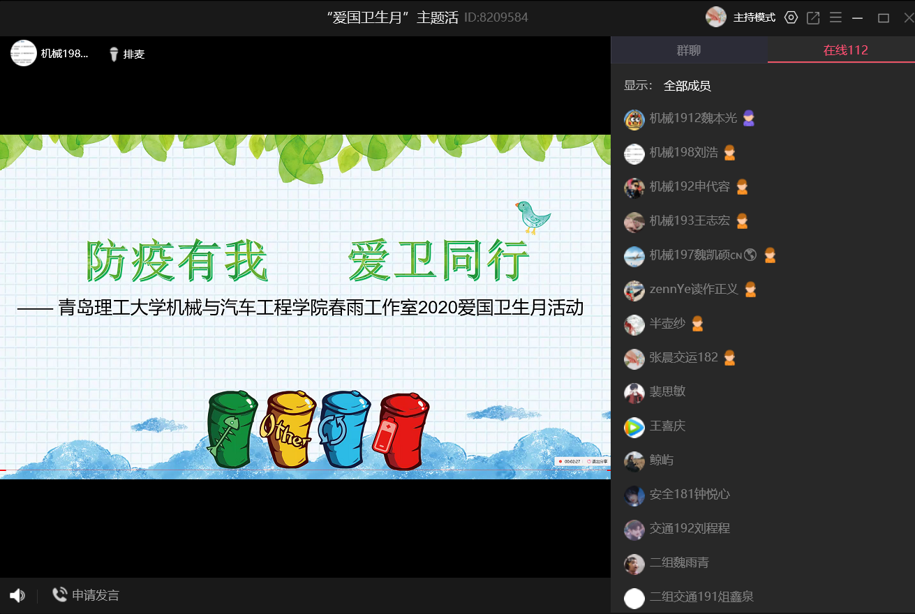 春雨志愿服务队以“云课堂”的方式开展“防疫有我,爱卫同行”主题宣讲活动。