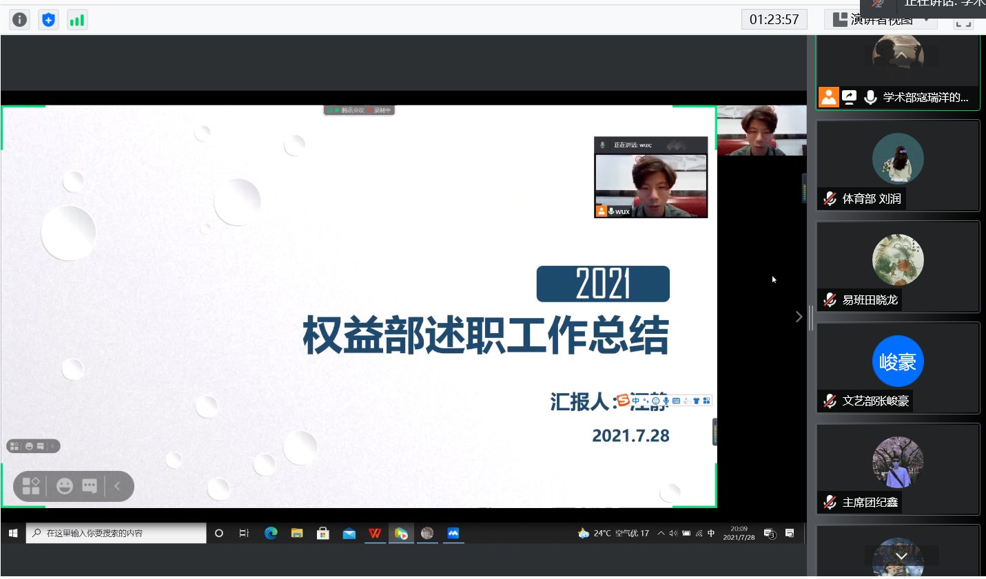 为深入总结学生会、研究生会等部门过去一年工作开展情况,谋划下一阶段工作思路和方向,7月28日,机械与汽车工程学生会开展述职评议线上会议,党委副书记董虎,学工办主任兼分团委书记王成,辅导员陈锦子,学生会、研究生会、易班等各部门负责人参加会议。