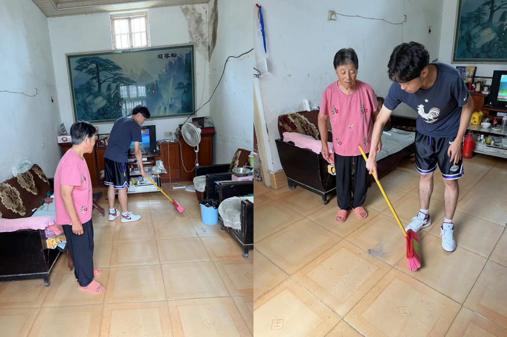 8月11日,团队成员孔绎森前往郯城县高峰村拜访老党员梁玉芝奶奶,与梁奶奶亲切交谈,并帮忙收拾家中卫生,梁奶奶年轻时吃苦耐劳,工作突出,担任村生产队队长,她说,“有一年冬天,邻居家没有粮食吃,没有种子种,我和丈夫就把自己过冬的粮食分给了他们,还给他们很多粮食种子......这在她看来都是很稀松平常的事情。”梁奶奶回忆,在他们那个年代,生活条件差,人民生活艰难,她积极加入中国共产党,加入为人民服务的队伍中,埋头苦干,努力做好为群众服务的工作。她鼓励当代青年,要有吃苦耐劳的精神,把艰难困苦作为磨炼自己的机遇,只有不断磨砺和强大自我,才能为祖国发展做出贡献。