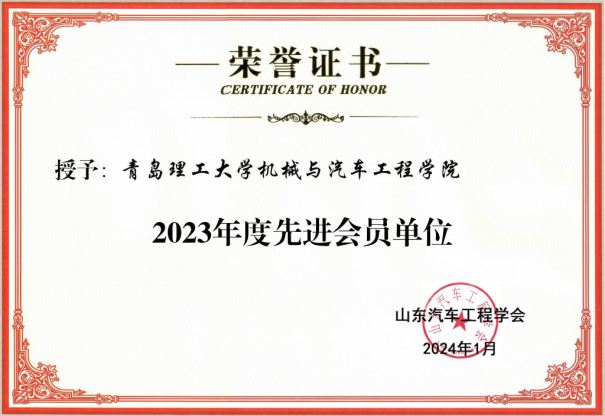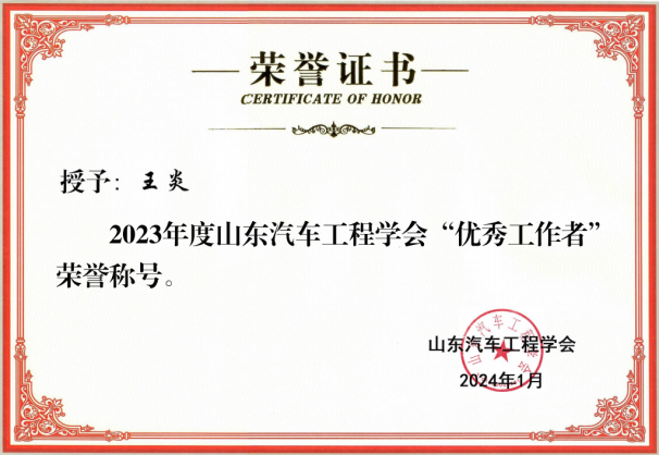 为深入贯彻习近平新时代中国特色社会主义思想,鼓励广大青年师生积极参与汽车行业科技创新,推动技术进步。山东汽车工程学会对在2023年度学会科技创新、学术交流、科学传播普及、科技咨询、工程能力评价、科技成果评价和承接政府职能等工作中表现突出的单位和个人予以表彰。yl88858永利官网积极参与山东省电动汽车设计大赛、汽车工程学会电动汽车设计比赛,积极申报引进全国汽车工程协会人才评定会议。最终,获评“山东汽车工程学会先进会员单位”,青年教师王炎副教授获评“优秀工作者”。