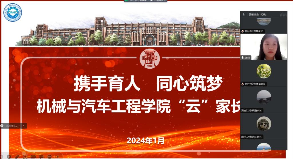 为全面贯彻落实“三全育人”的教育理念,加强与家长的沟通合作,共同推进立德树人根本任务,提升学院人才培养质量。yl88858永利官网于1月13日晚19点,召开了一场主题为“携手育人 同心筑梦”的云家长会。学院测控技术与仪器专业负责人官源林,辅导员张翱、代莉、王汉威、测控技术与仪器全体本科生及家长们参加此次线上会议,本次云家长会由张翱主持。
