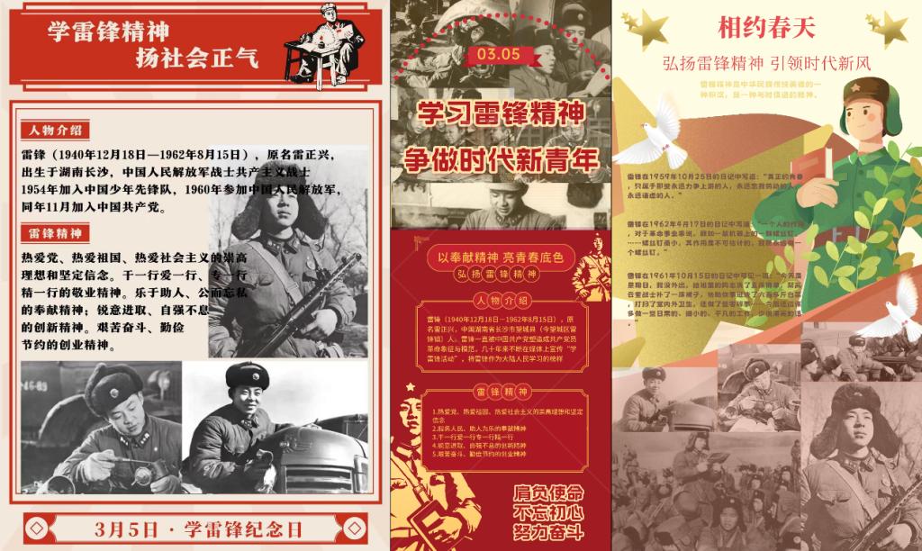 感悟雷锋精神,海报设计勇追“锋” 为积极调动学生参与度、发挥学生创造力、想象力。学院组织开展“弘扬雷锋精神,引领时代新风”海报设计展,以学生参与度高,交互体验感强的形式自主创造“雷锋海报”,共收集海报作品30余件。优秀作品通过微信公众号,学生社区宣传栏等展示,在学生群体中营造良好氛围。