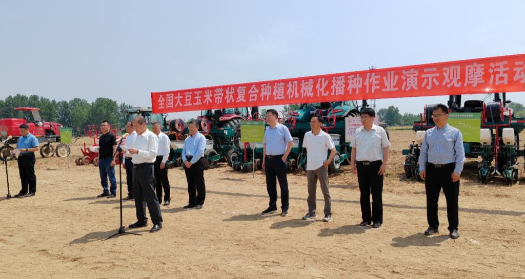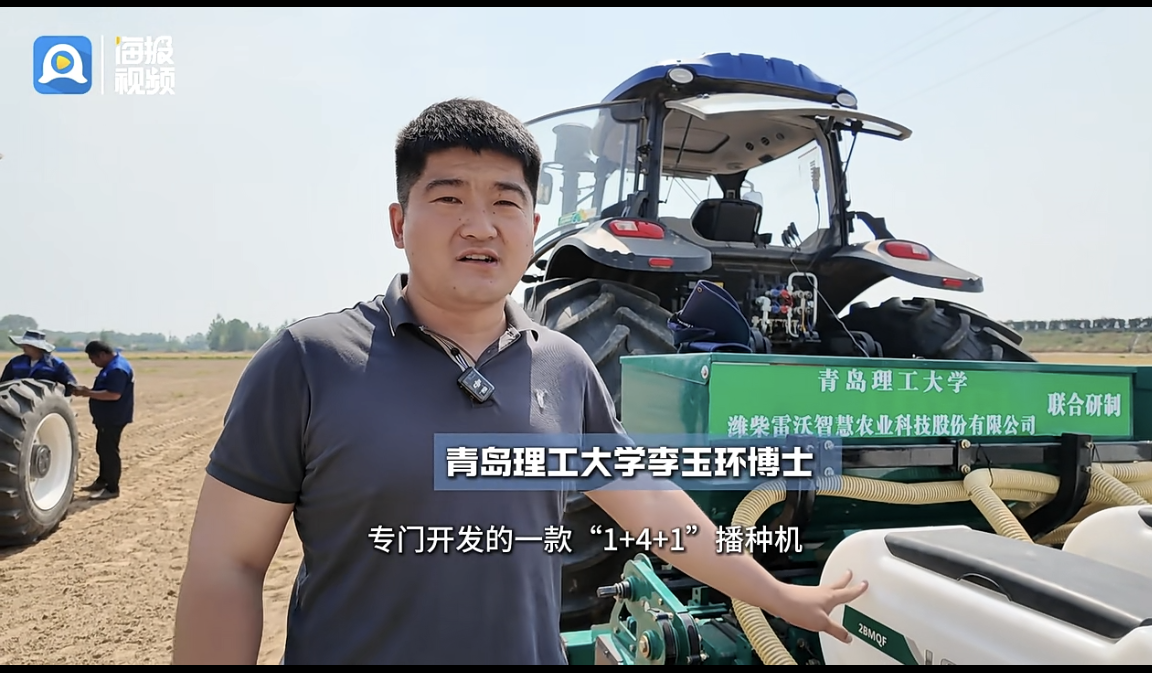 近日,《全国大豆玉米带状复合种植机械化播种作业演示观摩活动》在青岛西海岸新区大场镇万亩绿色增粮示范区成功举办,播种作业演示会上,青岛理工大学和潍柴雷沃智慧农业科技有限公司联合研制的2台气吸式大豆玉米带状复合免耕精量播种机受邀展示了播种作业情况,青岛理工大学智能农机装备团队杨发展、刘尊民、李玉环等人对大豆玉米带状复合专用播种机优势和功能进行了详细介绍,同期青岛大众网海报青岛对我校研制的播种机进行了专题采访报道。